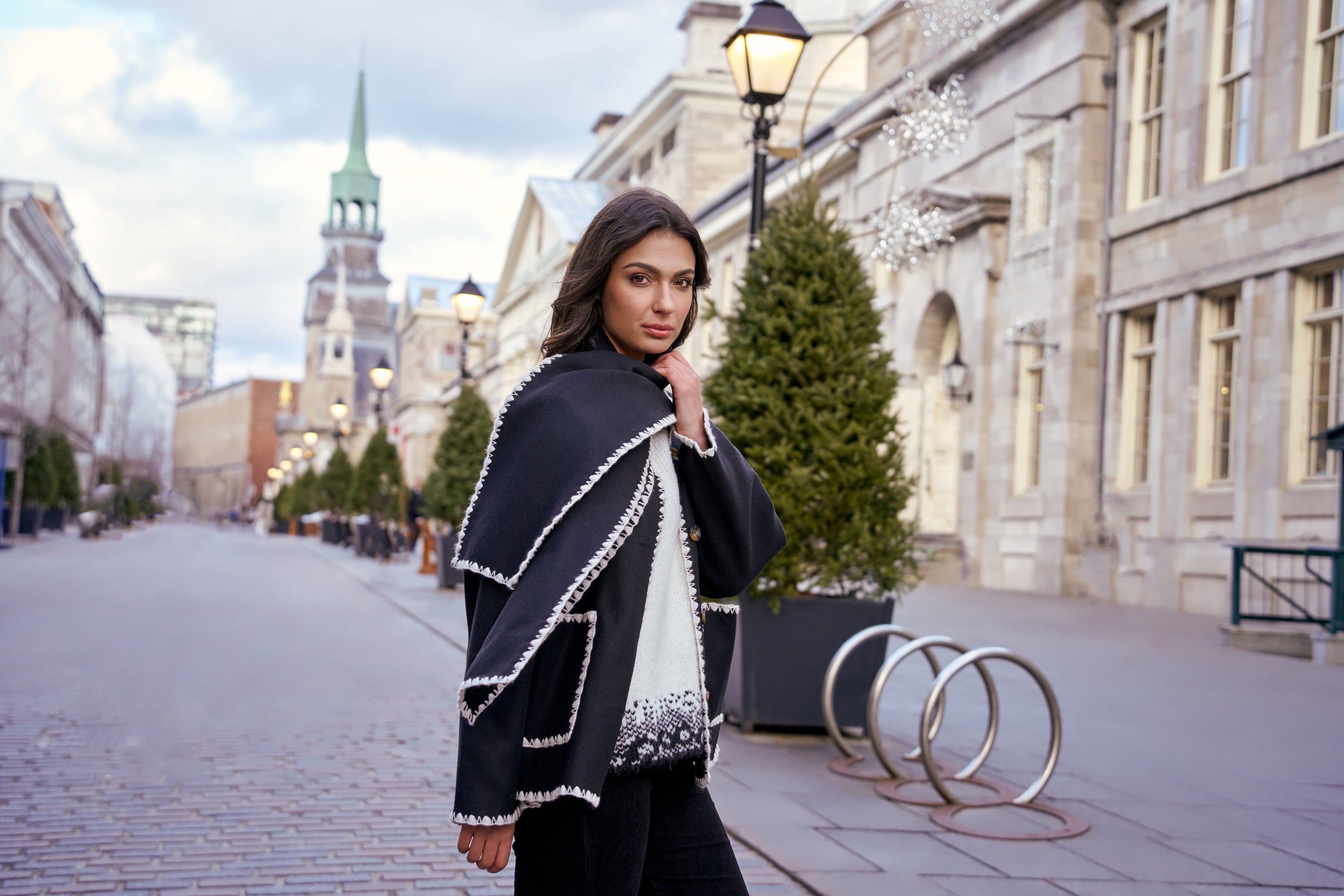 3 ColoursWomen's Knit & Woven Combo Snap-Button Front Bomber Jacket -