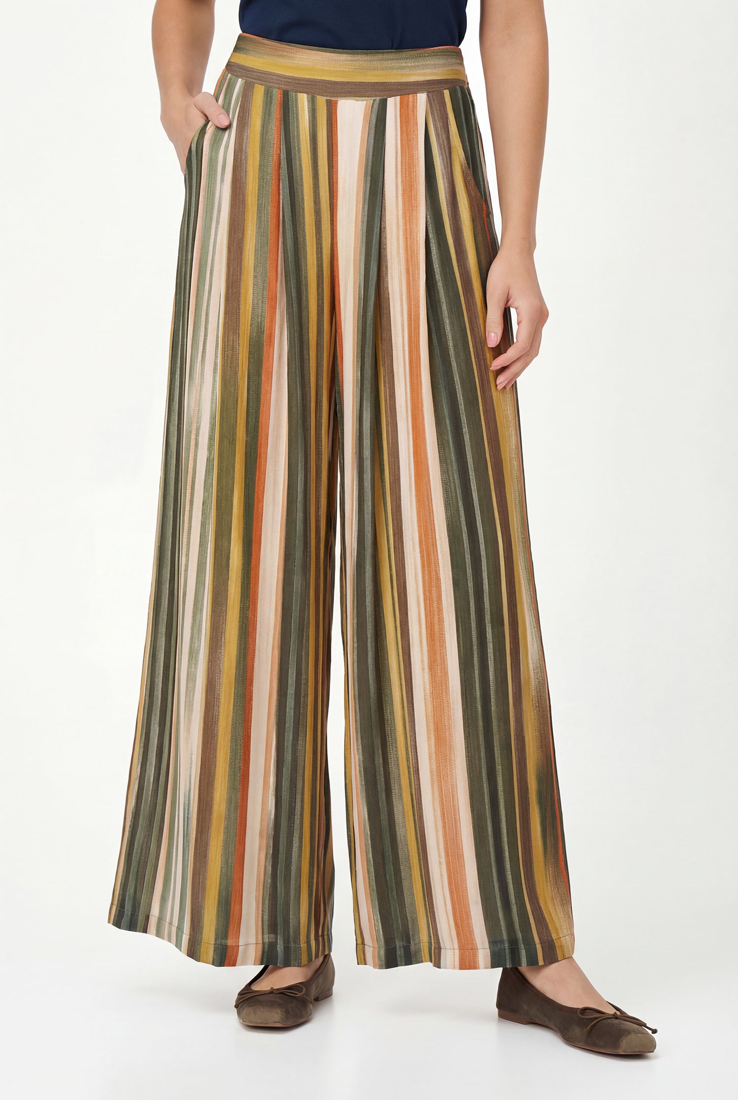Pantalon large tissé à enfiler pour femme, avec poches fendues. 100 % viscose.