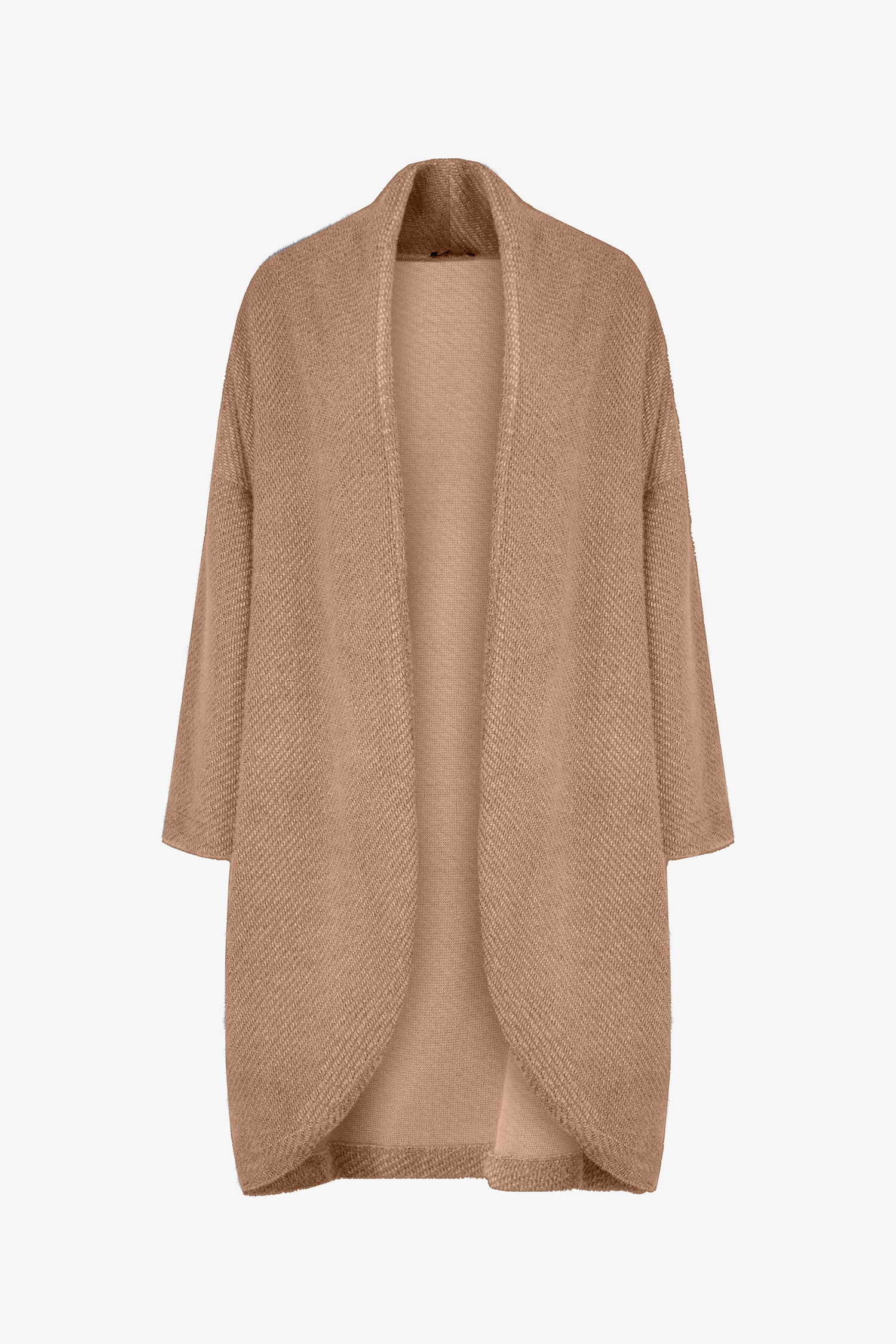 Women's Knit Long Sleeve Cardigan With A Shawl Collar. Made of 80% Polyester, 20% Nylon.