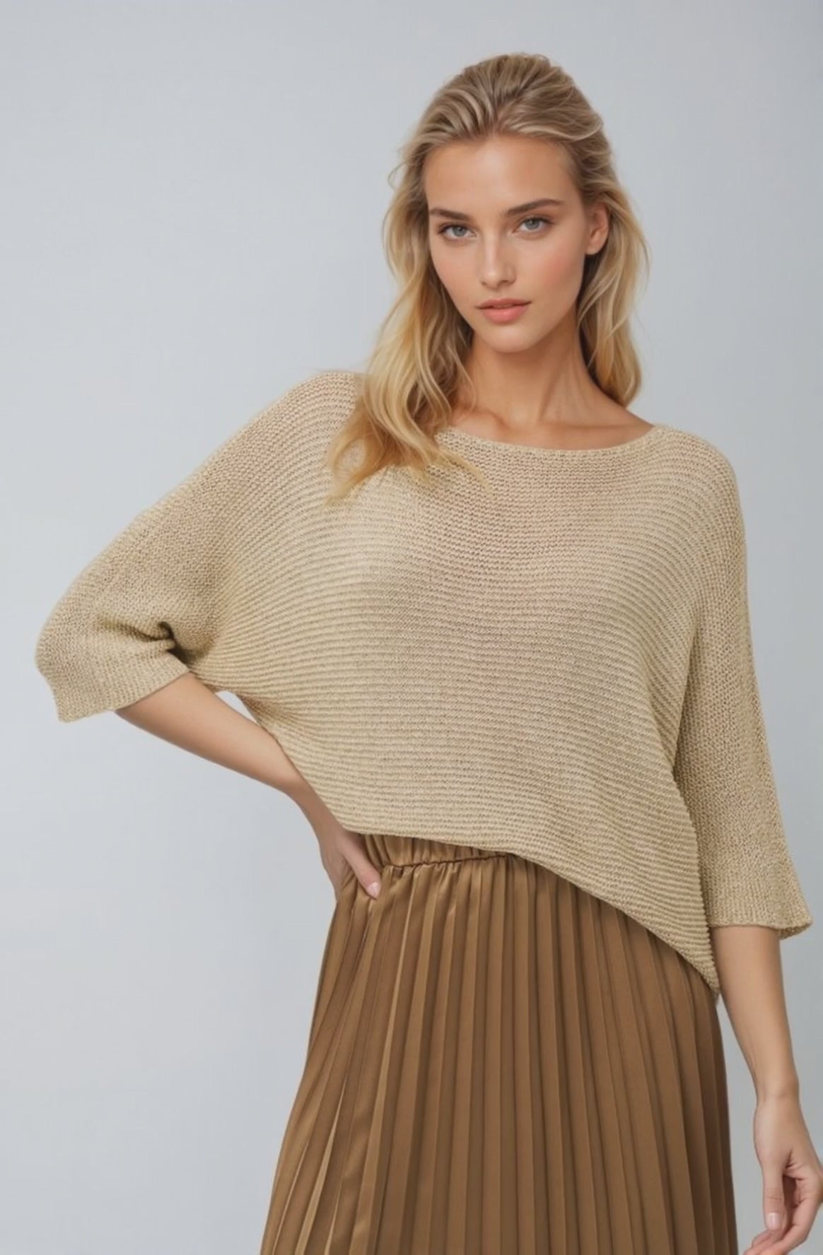 Women's Knit Boat-Neck Sweater, With 3/4Th Length Sleeves. Made of 100% Viscose.