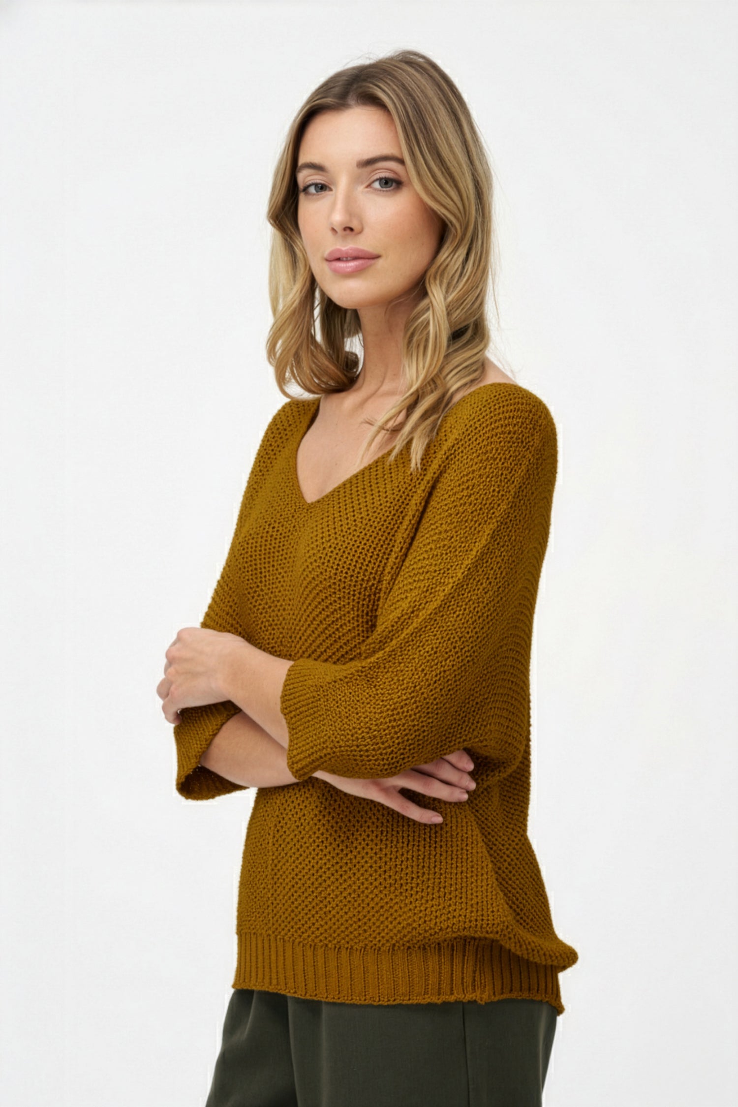 Women's Knit V-Neckline Sweater, With 3/4Th Length Sleeves. Made of 100% Acrylic.